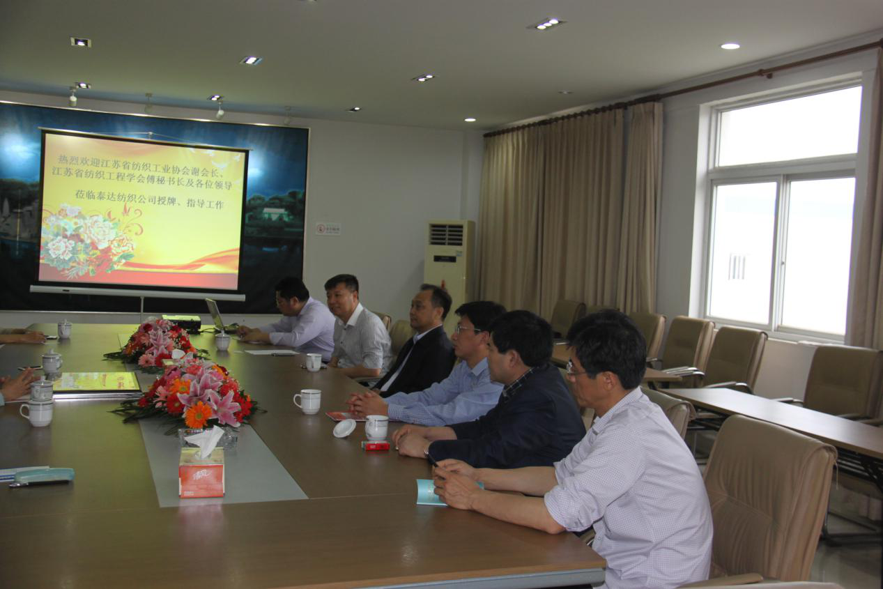 2016年5月27日上午11時(shí),省紡織工業(yè)協(xié)會(huì)謝明會(huì)長、省紡織工程學(xué)會(huì)傅瑞華秘書長、江南大學(xué)服裝學(xué)院謝春萍教授親臨江蘇泰達(dá)紡織有限公司授給“科技服務(wù)站”牌匾,授牌儀式由省紡織工程學(xué)會(huì)傅秘書長主持,泰州市科協(xié)竺大明主席、姜堰區(qū)科協(xié)何劍主席、泰達(dá)公司總經(jīng)理彭勃等相關(guān)負(fù)責(zé)人參加授牌儀式。