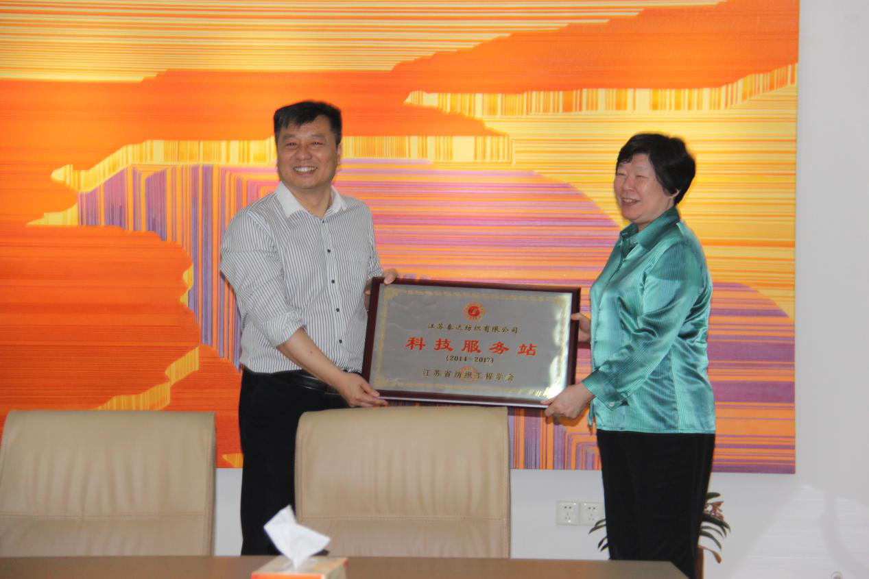 省紡織工程學(xué)會(huì)授給江蘇泰達(dá)紡織“科技服務(wù)站”牌匾